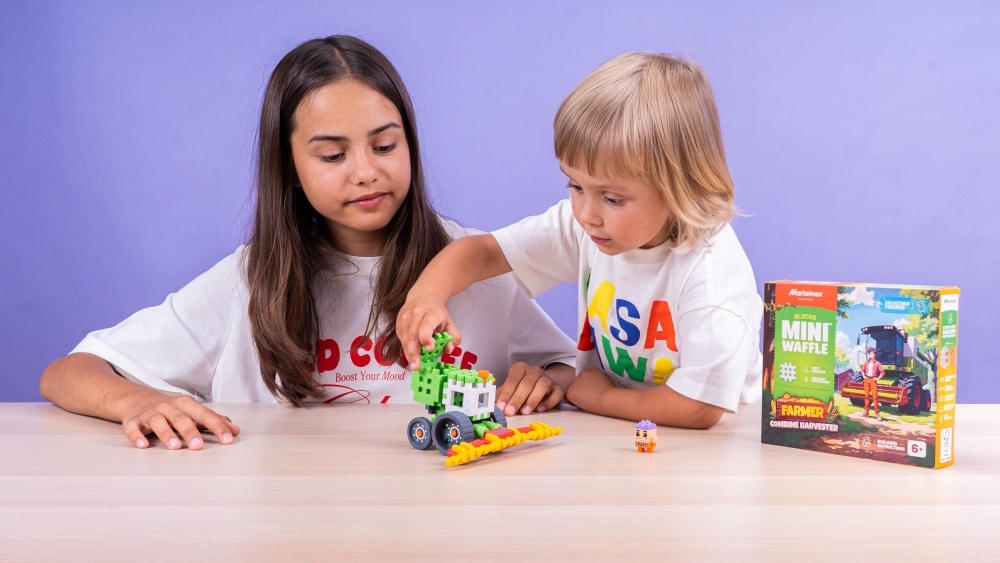 Zestaw Mini Waffle Farmer - Combine Harvester to zaproszenie do świata wiejskiej przygody i pracy na roli. Dziecko wciela się w rolę rolnika Tommy’ego, który dzięki swojemu nowoczesnemu kombajnowi może zebrać plony i przygotować je do dalszej drogi. Czas rozpocząć sezon żniw – zakasaj rękawy, wsiadaj do maszyny i działaj!