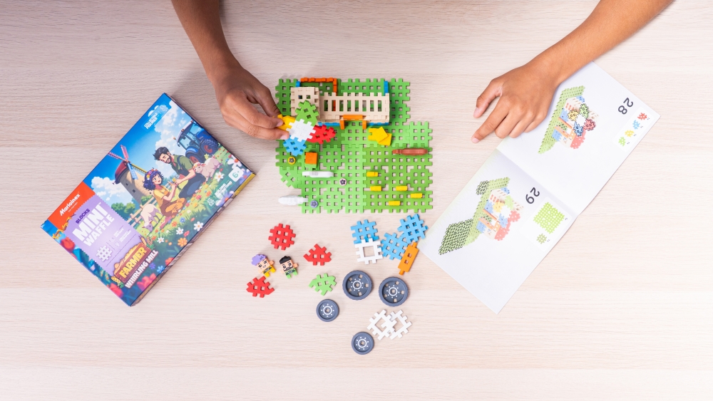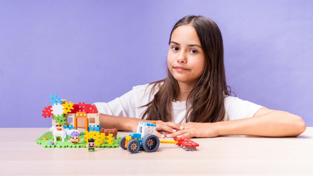 Z zestawu można stworzyć obracający się wiatrak, wiejski domek, maszynę do uprawy roli oraz wiejskie otoczenie z figurkami zwierząt. Aż 100 elastycznych, kolorowych elementów pozwala na wielogodzinną zabawę i kreatywne konstrukcje inspirowane życiem na farmie.