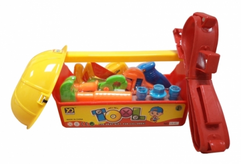 Zestaw majsterkowicza w poręcznej skrzynce narzędziowej. Do zestawu dołączony kask i pas narzędziowy.