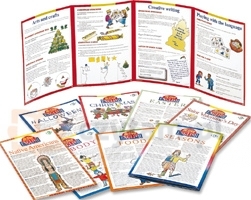 Broszura składa się z jednostronicowej prezentacji najważniejszych aspektów prezentowanego tematu, po której kolejno następują sekcje Learn by doing, Arts and Crafts, Creative writing, Playing with the language, Songs and Rhymes, Check it out zachęcające dzieci do praktycznego wykorzystania zdobytych wiadomości i poznanych słówek (na przykład poprzez propozycje gier, zabaw, prostych prac manualnych, lub piosenek).