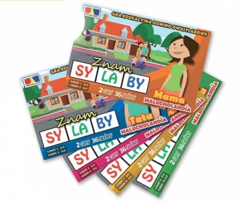 W skład pakietu wchodzi 5 gier czyli łącznie 10 części: Gra domino "Znam sylaby" Cz. 1 i 2 - zestaw Mama. Gra domino "Znam sylaby" Cz. 3 i 4 - zestaw Tata. Gra domino "Znam sylaby" Cz. 5 i 6 - zestaw Pompon. Gra domino "Znam sylaby" Cz. 7 i 8 - zestaw Misia. Gra domino "Znam sylaby" Cz. 9 i 10 - zestaw Kaju.