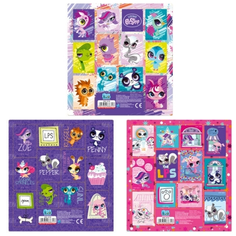 Zestaw kwadratowych naklejek z uroczymi zwierzakami z Littlest Pet Shop.