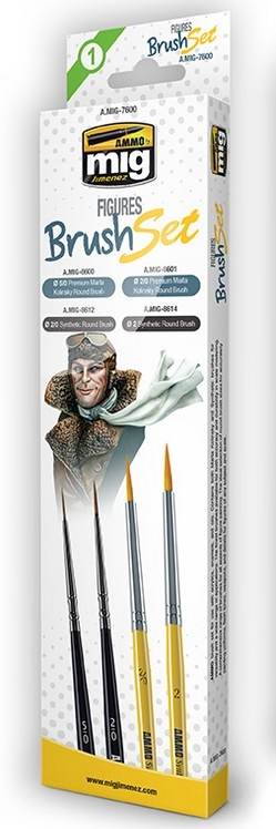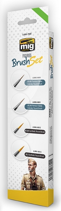 Ammo: Figures Brush Set to zestaw 4 pędzli wykonanych z włosia syntetycznego, który można stosować ze wszystkimi rodzajami farb, nawet najbardziej agresywnymi produktami. Sprawdzi się idealnie do stosowania z akrylami, emaliami, olejami. Dobór kształtów i rozmiarów sprawdzi się idealnie do pomalowania każdego rodzaju figurki czy dioramy.
