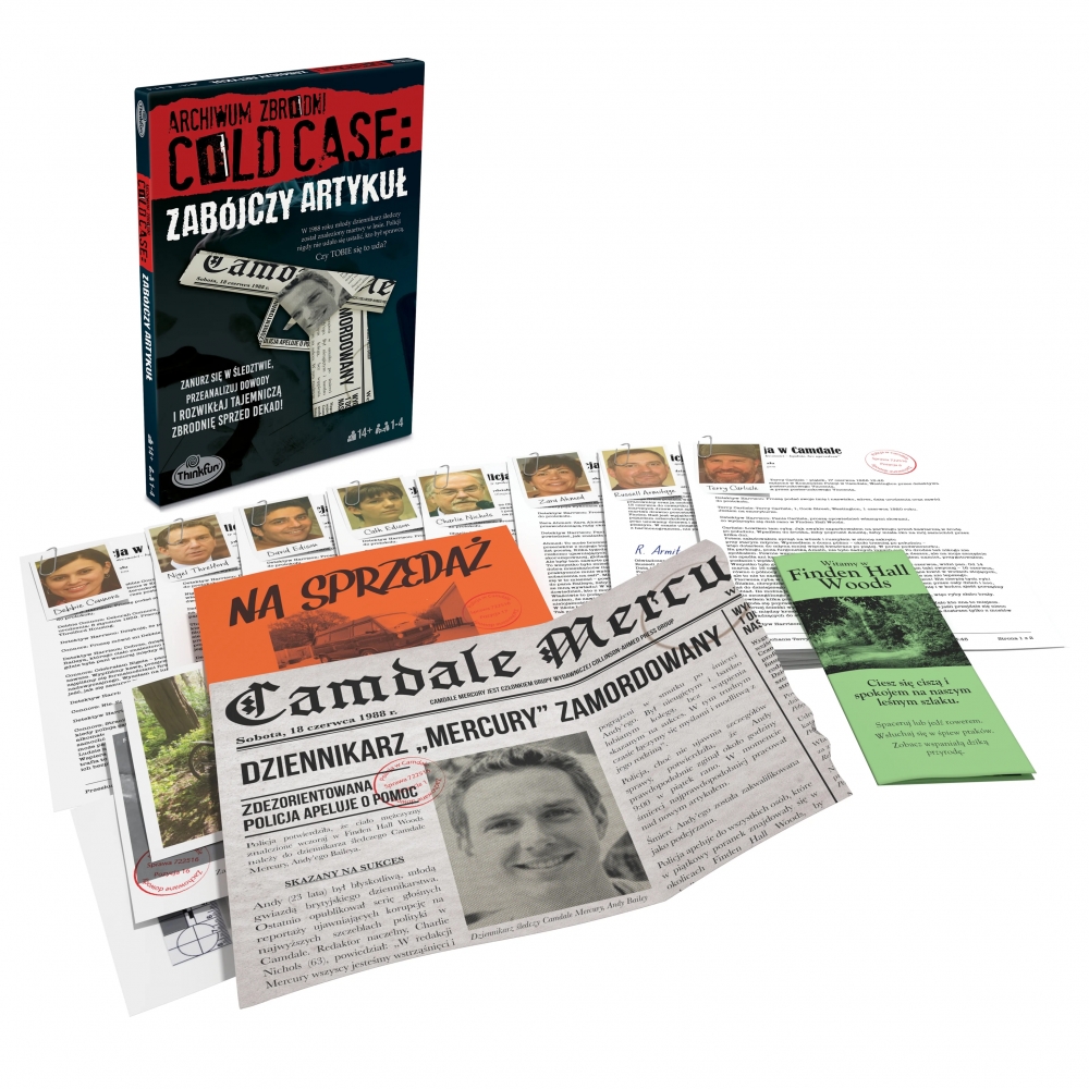 Archiwum Zbrodni: Zabójczy Artykuł to kryminalna zagadka dla 1–4 graczy w wieku 14+, przenosząca nas do 1988 roku. W małym miasteczku Camdale znaleziono ciało 23‑letniego dziennikarza śledczego Andy’ego Baileya. Został zastrzelony, a policji nigdy nie udało się ustalić, kto pociągnął za spust. Teraz gracze mają szansę rozwiązać ten nierozwikłany od lat przypadek, analizując ślady, których śledczy nie dostrzegli.