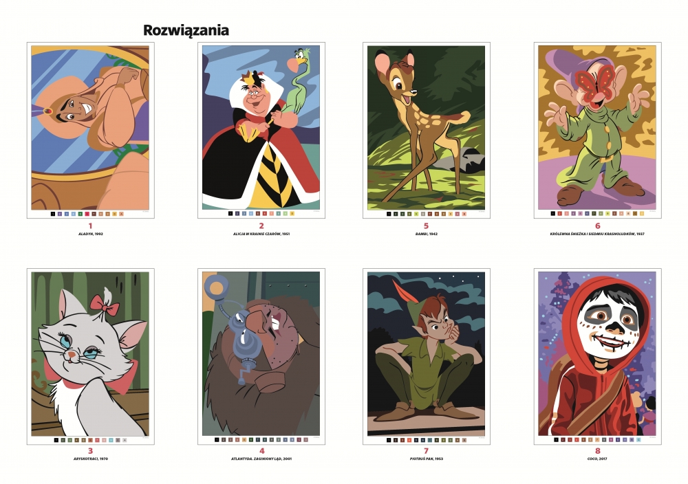 Oto kolejne 100 niepublikowanych wcześniej plansz do kolorowania. Znajdziesz wśród nich wizerunki postaci, które dobrze znasz z ulubionych animacji. Dobierz barwy zgodnie z kodem umieszczonym na dole każdej strony i wypełniaj nimi pole po polu, a powstaną zachwycające obrazy.