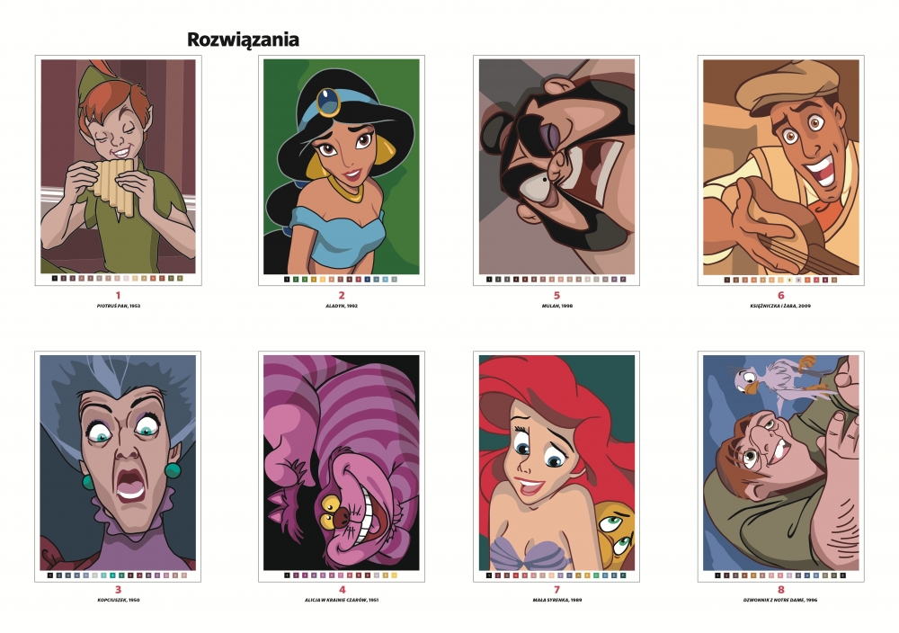 Kopciuszek, Esmeralda oraz wiele innych postaci z kultowych animacji Disneya zagościło na stronach kolejnego tomu z cyklu „Klasyka”. Zacznij od doboru kolorów zgodnie z paletą barw zamieszczoną pod każdą ilustracją. Następnie wypełniaj pola, obserwując, jak dzięki twojej cierpliwości i twórczemu zaangażowaniu powstają niepowtarzalne kompozycje.