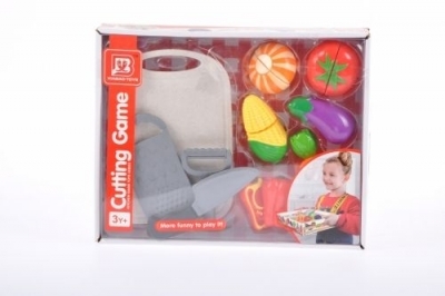Zawartość zestawu: pomidor, kukurydza, papryka, marchew, bakłażan, cebula, deska do krojenia, tarka, obieraczka do warzyw