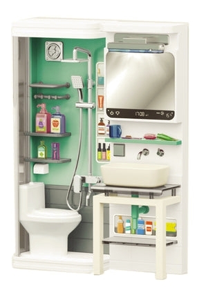 - Świecąca lampka nad umywalką + drobne akcesoria