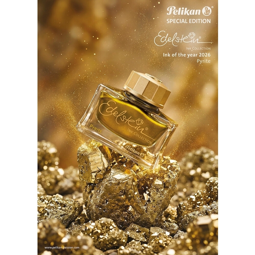 Atrament Pelikan Edelstein® Ink of the Year 2026 Pyrite to wyjątkowa edycja specjalna inspirowana blaskiem minerału pirytu, znanego ze swojego metalicznego, złocisto-szarego połysku. Ten wyrafinowany odcień łączy elegancję z nowoczesnym charakterem, nadając pismu unikalną głębię i subtelny połysk. Dzięki aksamitnej konsystencji i niezwykle płynnemu przepływowi atrament zapewnia wyjątkowy komfort pisania, jednocześnie podkreślając indywidualny styl użytkownika. Pyrite to nie tylko kolor – to wyraz osobowości, inspirowany siłą, pewnością siebie i ponadczasowym pięknem natury. Idealnie sprawdzi się zarówno w codziennym pisaniu, jak i przy tworzeniu eleganckiej korespondencji czy projektów kreatywnych. To kolekcjonerska propozycja dla miłośników piór wiecznych, dostępna w limitowanej odsłonie na rok 2026