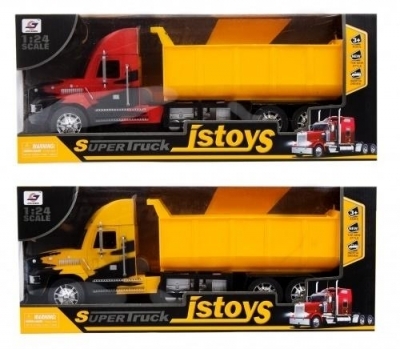 Samohód cięzarowy występuje w kolorach czerwonym i żółtym. Posiada podnoszoną naczepę. Zabawka w skali 1:24.