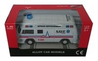 Metalowy model samochodu - karetkiZabawka ze światłem i dźwiękiem.Dla dzieci w wieku od 3 lat