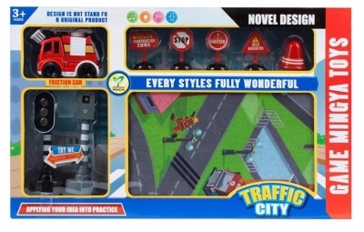 Dzięki macie przedstawiającej ulice od dziecko poczuje się jak w prawdziwym mieście. Zabawa na macie pochłonie dziecko na wiele godzin! W zestawie znajduje się mata (80.0 x 70.0 cm) przedstawiająca ulicę, samochód Strażacki oraz 7 znaków drogowych. Zabawka wykonana jest z plastiku oraz materiału.