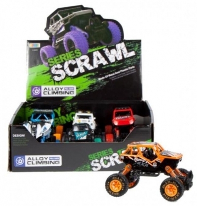Naciągnij i puść! Auto Terenowe MEGA CREATIVE pojedzie dalej samo! Auto posiada funkcję pull back dzięki czemu, po naciągnięciu tylnych kół do tyłu i puszczeniu go, jedzie samodzielnie do przodu. Samochód posiada również terenowe zawieszenie na sprężynach oraz gumowe koła, dzięki czemu ma lepszą przyczepność w każdym terenie. Dodatkową atrakcją w samochodzie są otwierane drzwi. Samochód występuje w różnych wersjach kolorystycznych. Samochód wykonany głównie z metalu z elementami z plastiku.