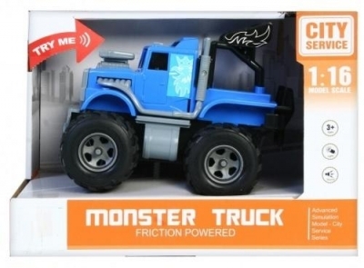 Pojazd po włączeniu wydaje odgłosy jeżdżącej ciężarówki oraz świecą się lampki ostrzegawcze. Wydaje odgłosy trąbienia, dźwięk cofania. Kabina ciężarówki posiada duże, gumowe koła dla lepszej przyczepności. Samochód w skali 1:16. Produkt wykonany z plastiku. Wymaga zasilania bateriami 3xLR44 (dołączono). Przeznaczony dla dzieci od lat 3.