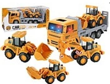 auto z lawetą i pojazdem budowlanym, światło, dźwięk; 32x15x11cm, W/B