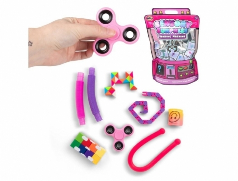 Odkryj ekscytującą zabawę z Automatem z Niespodzianką - Różowa Torebka! To stylowe, wielokrotnego użytku opakowanie w modnym stylu automatu sprzedającego kryje w sobie 8 popularnych gadżetów sensorycznych, z których każdy zapakowany jest w saszetkę-niespodziankę, co dodaje elementu zabawy i zaskoczenia. Idealny pomysł na prezent, do kolekcjonowania lub po prostu dla frajdy z otwierania - to prawdziwy must-have dla wszystkich fanów zabawek sensorycznych!