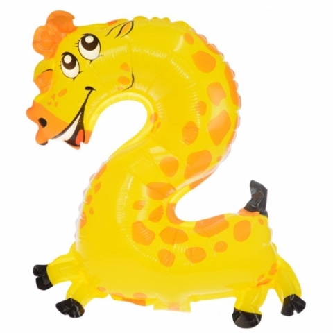 Balon foliowy w kształcie cyfry 2, stylizowany na żyrafę. Balon urodzinowy dla dzieci. W połączeniu z innymi balonami z serii tworzy oryginalną dekorację przyjęcia urodzinowego, rocznicowego. Produkt należy napełnić powietrzem. Balon posiada samozaciskający się wentyl - nie trzeba go dodatkowo wiązać. Balon o wymiarze 45 cm przed napompowaniem oraz 36 cm po nadmuchaniu