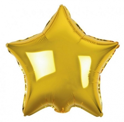 Balon foliowy w kształcie gwiazdy w kolorze złotym. Doskonały do dekoracji przyjęć, urodzin, sylwestra i innych uroczystości. Może być napełniany powietrzem lub helem.