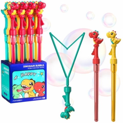 Magiczna Bańka Mydlana Dinozaur - Miecz Bańkowy! Przenieś się w świat prehistorycznych stworzeń z tym fantastycznym gadżetem, który zachwyci każde dziecko - magiczną bańką mydlaną w kształcie miecza, zwieńczonego figurką dinozaura! To idealna zabawka do ogrodu, na plac zabaw czy do kreatywnej zabawy w domu, która zapewni godziny beztroskiej radości. Główne cechy produktu: Design Dinozaura: Bańka ma formę kolorowego miecza, na którego szczycie znajduje się urocza figurka dinozaura. Dostępne są różne warianty kolorystyczne (czerwony, żółty, turkusowy), z dinozaurami w żywych odcieniach, co czyni zabawkę jeszcze bardziej atrakcyjną dla małych fanów prehistorycznych gadów. Łatwe robienie baniek: Wystarczy zanurzyć końcówkę miecza w płynie do baniek (dołączony do zestawu lub dostępny osobno w buteleczce stanowiącej uchwyt miecza) i machnąć nim, aby stworzyć mnóstwo pięknych, lśniących baniek mydlanych. Duży otwór do baniek: Końcówka miecza, przez którą dmucha się bańki, ma kształt litery "V" lub trójkąta, co pozwala na tworzenie większych i bardziej efektownych baniek. Wbudowany pojemnik na płyn: Uchwyt miecza może służyć jako pojemnik na płyn do baniek, co jest wygodne i zapobiega wylewaniu się. Rozwija kreatywność i aktywność: Zachęca dzieci do zabawy na świeżym powietrzu, biegania i interakcji, jednocześnie pobudzając wyobraźnię. Idealny na prezent: Atrakcyjne opakowanie zbiorcze (display) sprawia, że jest to doskonały produkt do ekspozycji w sklepie oraz na drobne upominki, nagrody czy jako element urodzinowych przyjęć. Bezpieczne dla dzieci: Produkt wykonany jest z bezpiecznych, nietoksycznych materiałów. Zalecany wiek: 3+ Wielkość 50 cm Podaruj dziecku odrobinę jurajskiej magii i radości z tymi pięknymi bańkami mydlanymi w kształcie miecza dinozaura!
