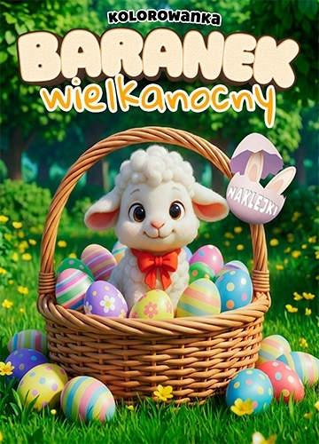 Radosna, wiosenna odsłona świątecznych zabaw. Bohaterem tej części jest sympatyczny baranek w otoczeniu kurczaczków, bazi i pierwszych kwiatów. Obrazki są duże i wyraźne, co ułatwia zabawę nawet młodszym dzieciom. Całość uzupełnia arkusz naklejek gratis - można nimi udekorować pokolorowane strony albo wykorzystać je do ozdobienia własnoręcznie robionych kartek świątecznych dla bliskich.