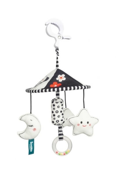 Dodaj odrobinę radości i atrakcji do spacerów z naszą elegancką karuzelą do wózka dziecięcego. Dzięki minimalistycznej czarno-białej kolorystyce idealnie wpasuje się w każdy wózek, wprowadzając harmonię i styl.