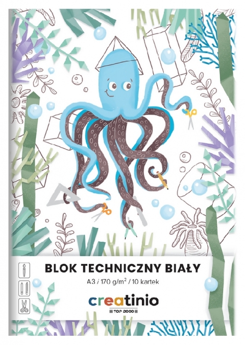 Bloki techniczne Creatinio są doskonałe do różnego rodzaju prac plastycznych. Gładki, biały papier jest odporny na częste ścieranie gumką. Dzięki temu błędy i zmiany koncepcji można dowolnie poprawiać, bez obniżania estetyki pracy.