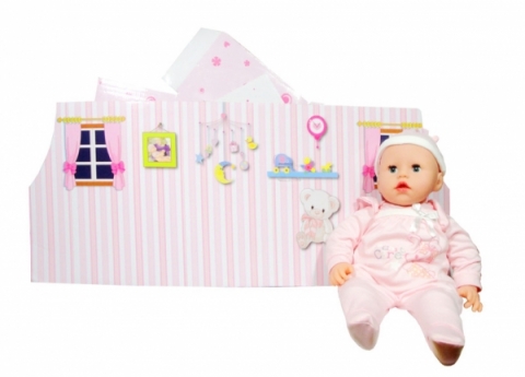 Lalka płacze i mówi po polsku (5 zdań: "Przytul mnie, bardzo Cię kocham", "Mamusiu, ukołysz mnie do snu",