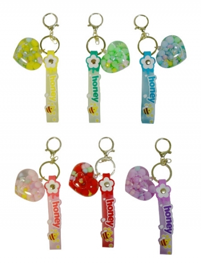 Brelok z zawieszką w kształcie serca wypełnionego koralikami oraz z zawieszką z napisem honey. Dostępny w różnych kolorach, kolor wybierany losowo. Cena dotyczy jednej sztuki. Zabawka przeznaczona dla dzieci od lat 3. Podane wymiary są przybliżonymi wymiarami produktu.