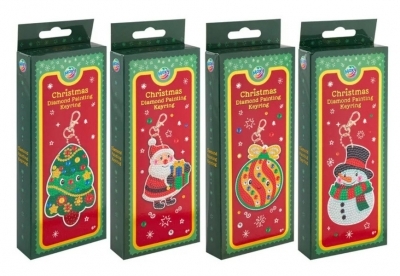 Zestaw do samodzielnego wykonania błyszczącego breloka z motywem świątecznym np. choinka, Mikołaj, bombka, bałwanek. W komplecie znajduje się silikonowy brelok, kolorowe kamyczki akrylowe, aplikator, tacka i klej do przyklejania ozdób.