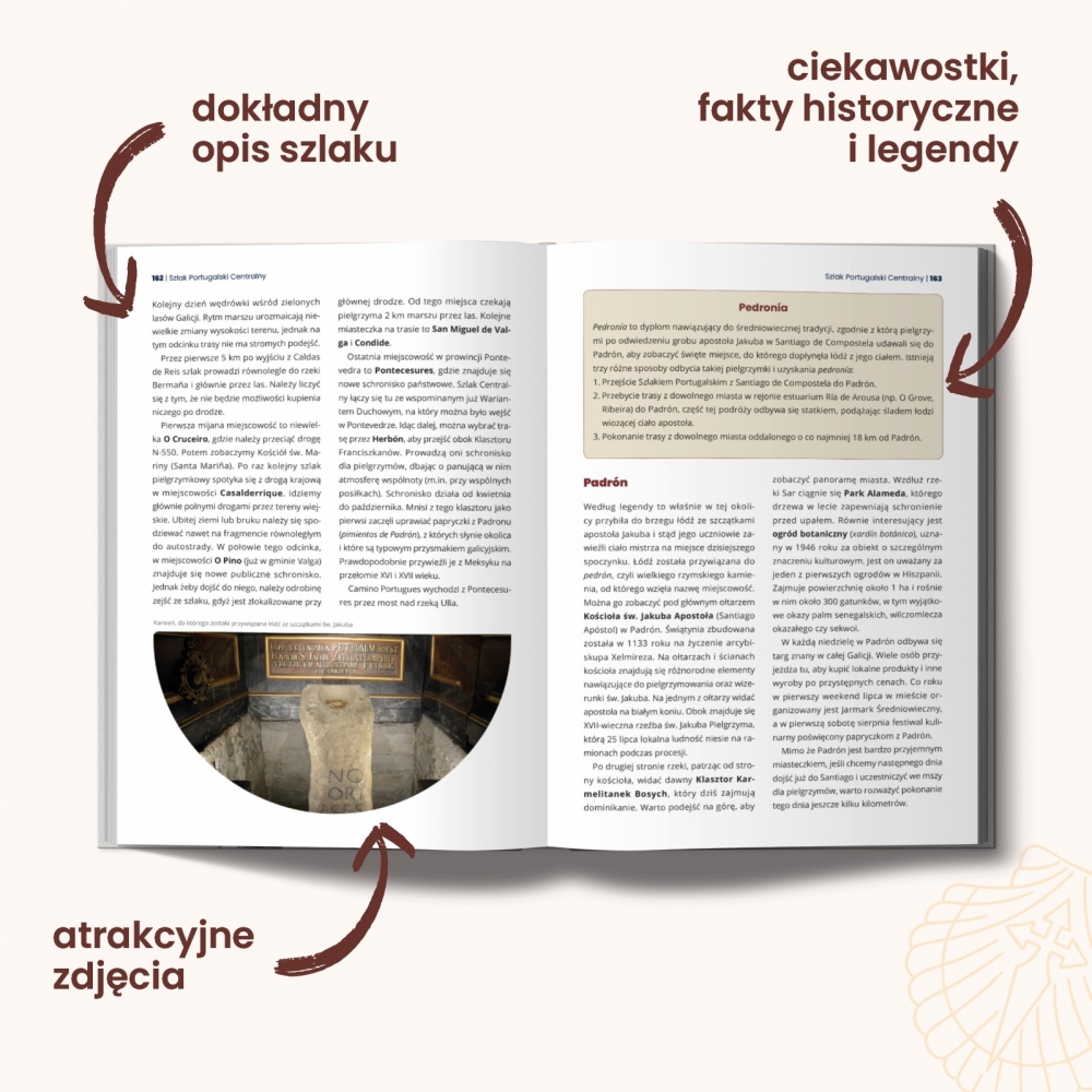Eliza Szymaniak prowadzi przez najpiękniejsze szlaki Camino de Santiago i pokazuje, jak zaplanować trasę, którą można przejść w dwa tygodnie. Podpowiada, gdzie spać i zjeść, co warto zobaczyć, jak się spakować i czego spodziewać się po drodze. Poleca także warianty rowerowe dla każdego szlaku. Całość uzupełniają szczegółowe profile i mapy, które pomogą .