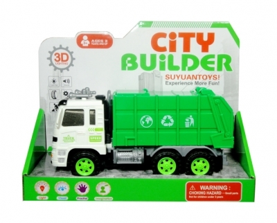 Zabawka ciężarówka śmieciarka z dźwiękiem. Świeci kolorowymi światełkami.