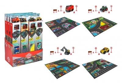 Mata do zabawy Dickie Toys zapewnia dzieciom ekscytujące i interaktywne wrażenia. Dzięki antypoślizgowemu spodowi i dużej powierzchni do zabawy o wymiarach 70 x 80 cm idealnie nadaje się do kreatywnej zabawy samochodami i sytuacjami na drodze. Mata zawiera jeden mini samochodzik (8 cm) z wolnym biegiem i znakami drogowymi i jest dostępna w czterech wariantach: farma, SOS, plac budowy i transport. To świetna powierzchnia, która łączy zabawę, naukę i ruch.