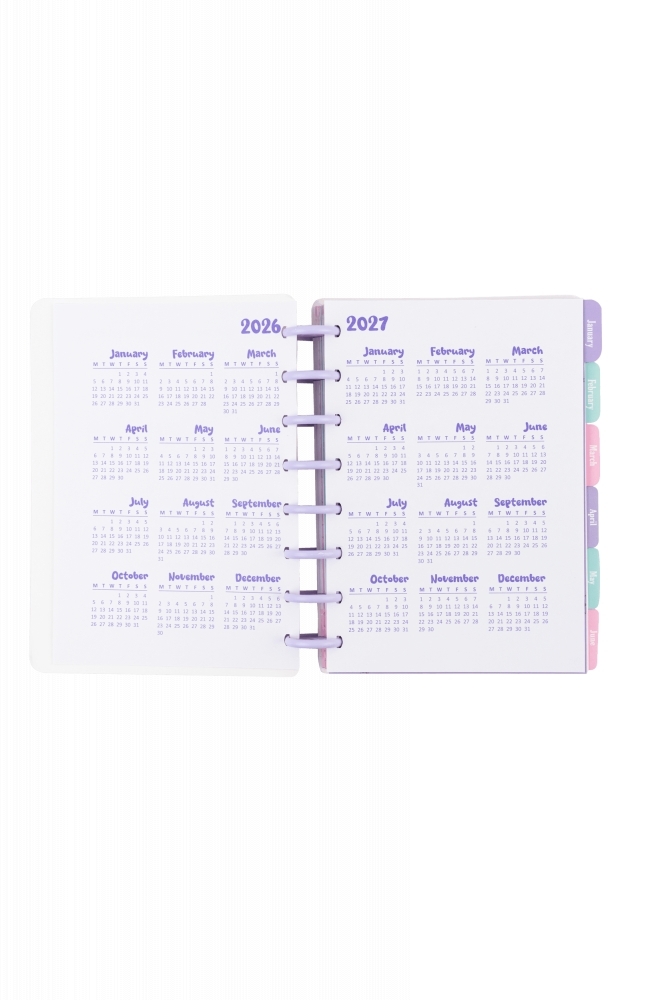 - Duże, solidne ringi w rozmiarze maxi – łatwo wyjmiesz i dodasz własne wkłady, planner rośnie razem z Tobą