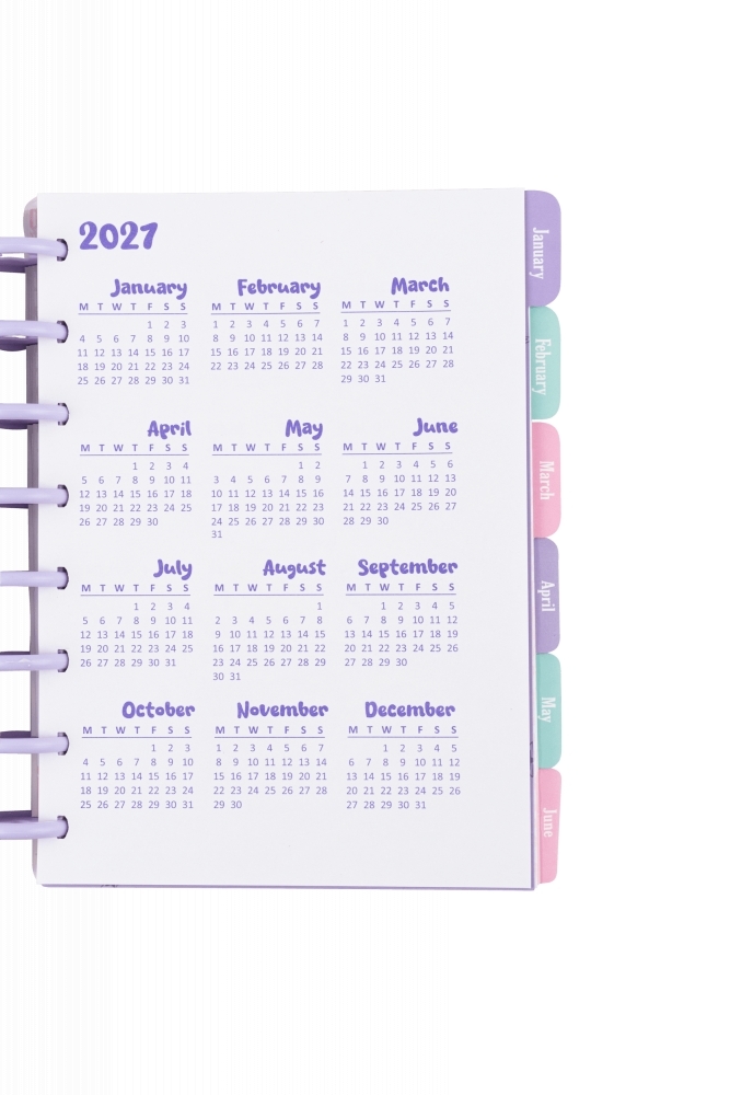 - Strony z kalendarzem rocznym – od razu widzisz cały rok i nie przegapisz żadnej ważnej daty