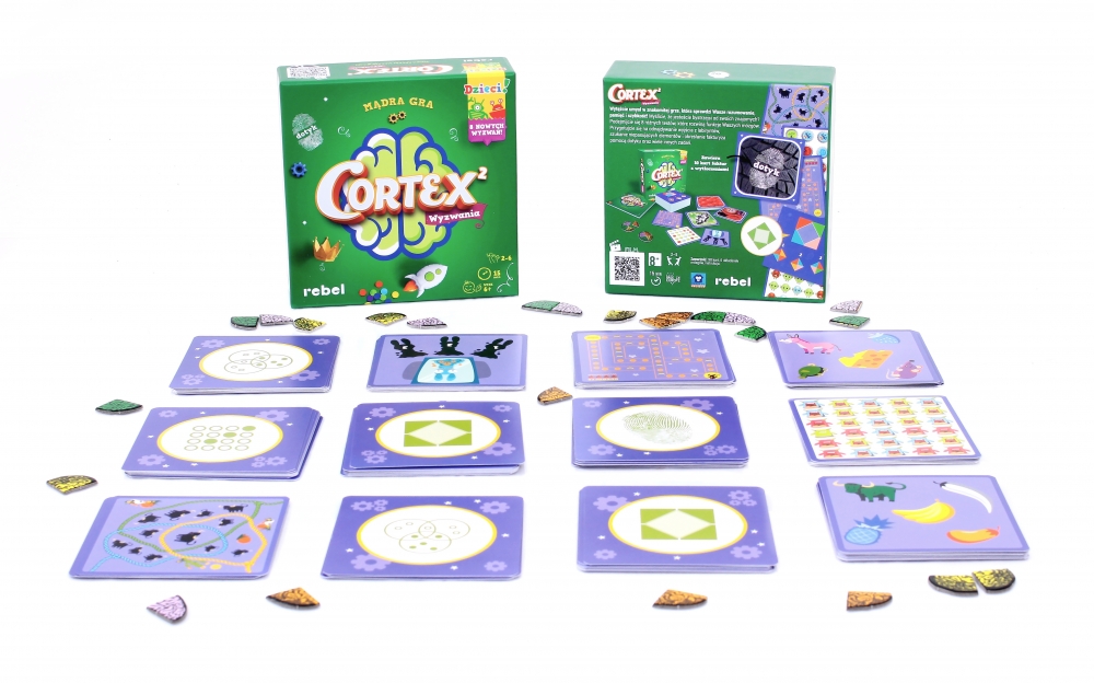 W Cortex dla Dzieci 2 od 2 do 6 graczy będzie rywalizować ze sobą, szybko zgadując odpowiedzi na 8 rodzajów wyzwań, które rozwijają różne funkcje ludzkiego mózgu. Za prawidłowe odpowiedzi otrzymają części układanki, a pierwsza osoba, która zdobędzie wszystkie 4 części i ukończy swój obrazek mózgu, zostanie zwycięzcą!