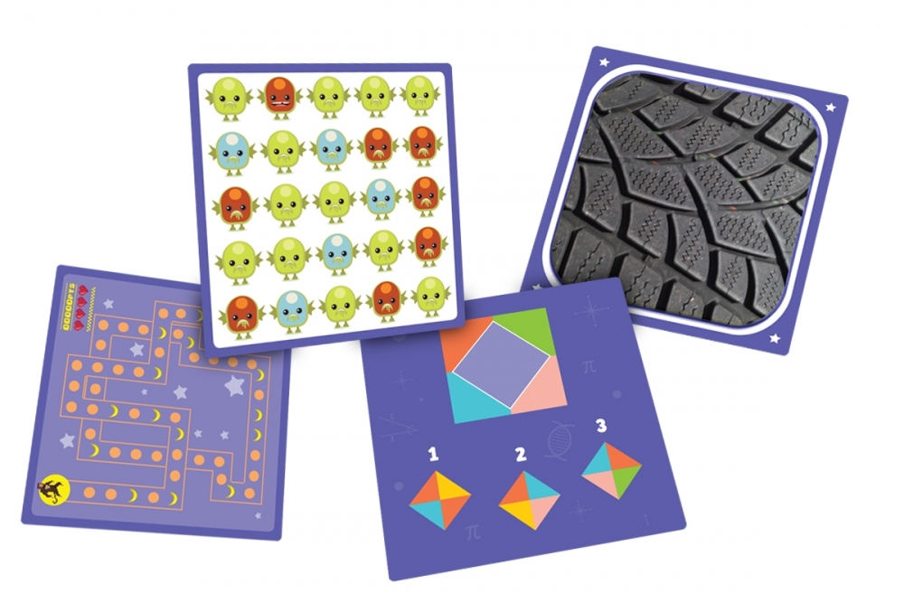 - Kombinacje - powiedz, który z małych kwadratów może uzupełnić wzór znajdujący się na środku.
