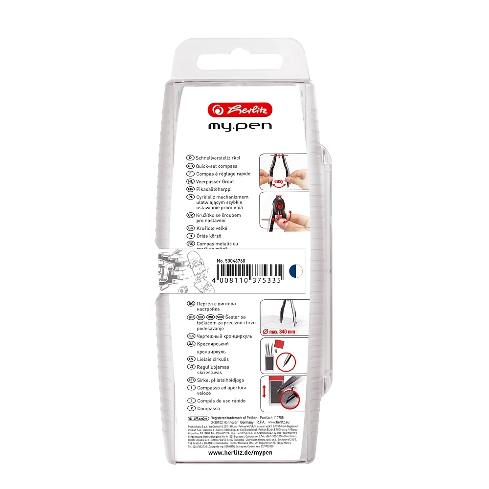 Cyrkiel szybkoprzestawny my.pen pozwala na szybką i łatwą regulację rozstawu, co ułatwia precyzyjne kreślenie okręgów i łuków.