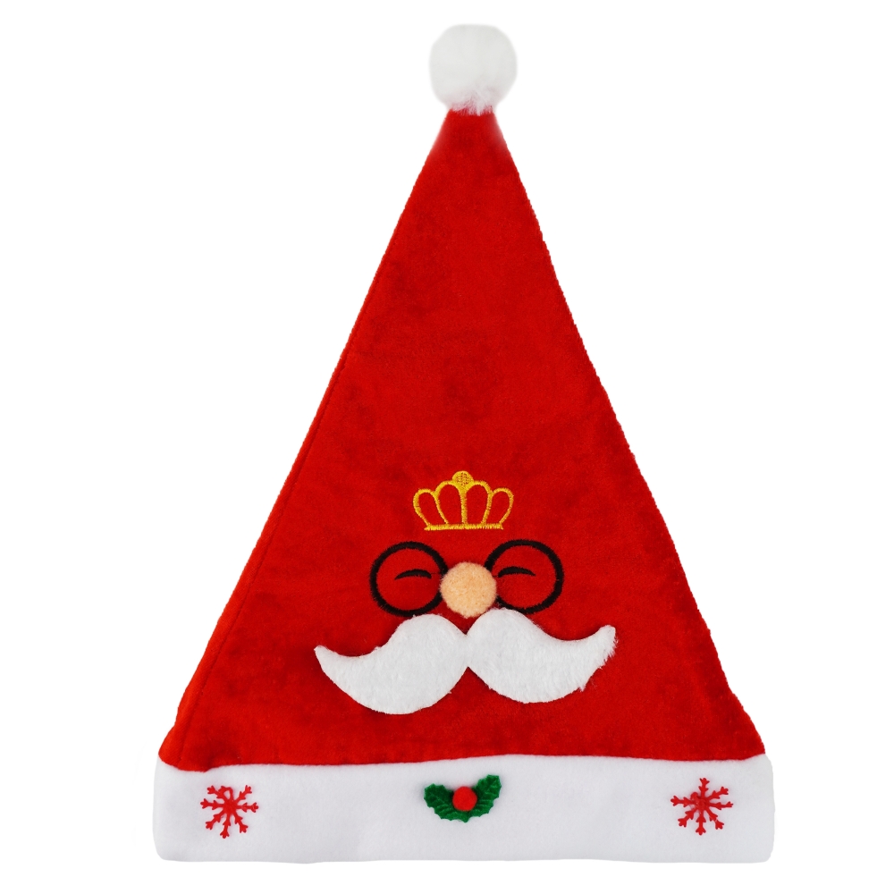 Tworzące buzię naszycia na czapeczce rozbawią każdego podczas świątecznej kolacji.