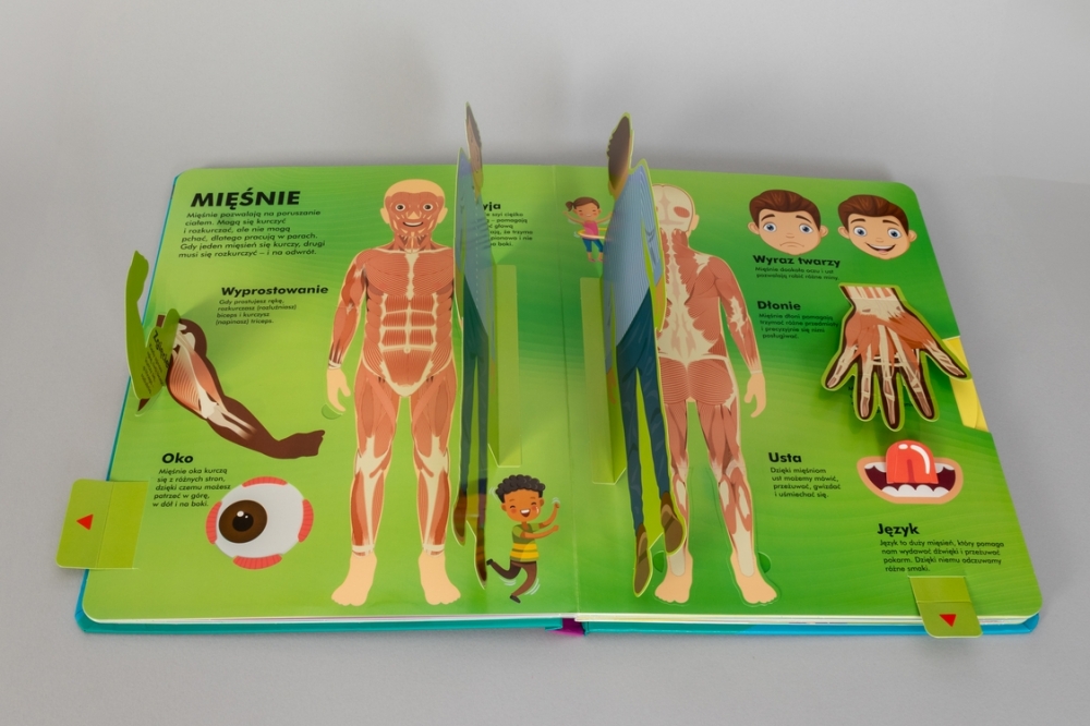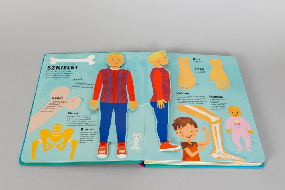 Ta wyjątkowa książka pokaże najmłodszym, jak fascynujące jest ludzkie ciało! Dzięki ruchomym elementom – okienkom, suwakom, klapkom i kręciołkom – młodzi czytelnicy będą zaglądać do wnętrza organizmu i poznawać jego tajemnice.