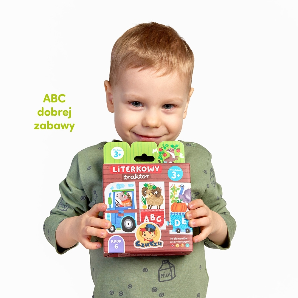 Literkowy traktor od CzuCzu to świetny pomysł na trafiony edukacyjny prezent dla przedszkolaka, który interesuje się literami i podejmuje pierwsze próby pisania i czytania. Ułóżcie puzzle - pomagaj dziecku na tym etapie, wskazując i nazywając kolejne litery i wyrazy na dane głoski. Obrysujcie kształty liter palcem. Pokazujcie i nazywajcie pasażerów i towary w kolejnych wagonikach, odkrywajcie litery wokół Was i podejmijcie próby ich zapisu. Fascynujący świat liter wita!