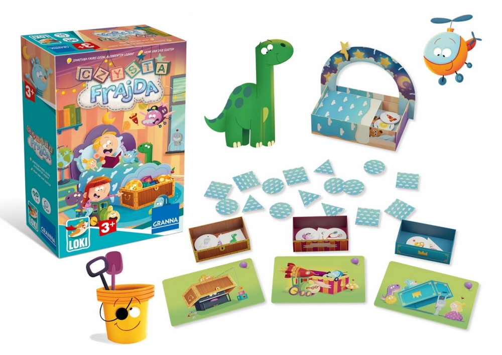 Czysta frajda to przyjazna gra dla najmłodszych, w której porządkowanie pokoju staje się zabawną przygodą! Gracze odkrywają żetony z zabawkami i muszą umieścić je we właściwych kuferkach — a jeśli dana zabawka nie pasuje do żadnego, trafia do przytulnego łóżeczka. Kluczem do zwycięstwa jest nie tylko spostrzegawczość, ale też pamięć, bo zbyt wiele odkrytych symboli gwiazd przybliża noc i koniec gry.