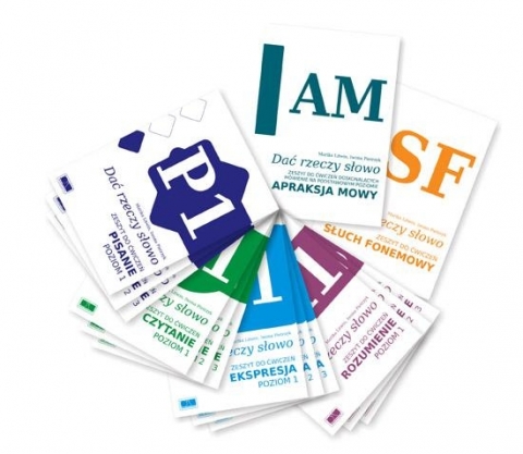 W skład pakietu wchodzi 5 serii zeszytów ćwiczeń: Dać rzeczy słowo. Rozumienie - poziom 1. Dać rzeczy słowo. Rozumienie - poziom 2. Dać rzeczy słowo. Rozumienie - poziom 3 - czytaj więcej. Dać rzeczy słowo. Pisanie - poziom 1 - czytaj więcej. Dać rzeczy słowo. Pisanie - poziom 2 - czytaj więcej. Dać rzeczy słowo. Pisanie - poziom 3 - czytaj więcej. Dać rzeczy słowo. Ekspresja - poziom 1 - czytaj więcej. Dać rzeczy słowo. Ekspresja - poziom 2 - czytaj więcej. Dać rzeczy słowo. Ekspresja - poziom 3 - czytaj więcej. Dać rzeczy słowo. Czytanie - poziom 1 - czytaj więcej. Dać rzeczy słowo. Czytanie - poziom 2 - czytaj więcej. Dać rzeczy słowo. Czytanie - poziom 3 - czytaj więcej. Dać rzeczy słowo. Słuch fonemowy - czytaj więcej. Dać rzeczy słowo. Apraksja mowy - czytaj więcej.