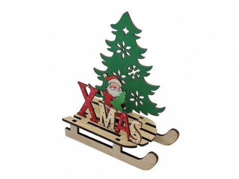 Dekoracja drewniana Mikołaj na saniach