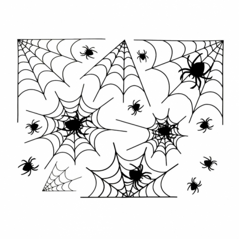 - Wzór: czarne pajęczyny z pająkami na przezroczystej folii.