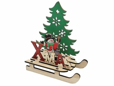 Dekoracja świąteczna drewniana bałwanek na saniach