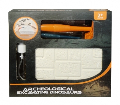 Dołącz do odkrywców szkieletów dinozaurów. Odkop swój własny szkielet Tyranozaura Rexa - słynnego T-Rexa, króla Dinozaurów. Po złożeniu powstanie model dinozaura. Rozbij swoją skałę i sprawdź, czy Ty też możesz odkryć skamieniałości w środku.. W zestawie przyrządy np. młotek, dłuto oraz dozownik do wody.