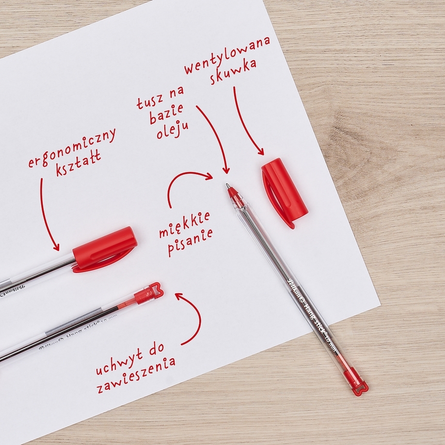 Długopis Pelikan Hang Stick to praktyczne i niezawodne narzędzie do codziennego pisania, które łączy wygodę użytkowania z funkcjonalnymi detalami. Dzięki ergonomicznemu kształtowi o przekroju zbliżonym do trójkąta, idealnie dopasowuje się do dłoni, zapewniając komfort nawet podczas długiego pisania. Tusz na bazie oleju gwarantuje miękki i płynny ruch po papierze. Co go wyróżnia? Specjalny uchwyt na końcówce, który umożliwia zawieszenie długopisu lub przymocowanie go do wybranego przedmiotu – idealne rozwiązanie dla miejsc, gdzie pisak powinien być zawsze na swoim miejscu. Wentylowana skuwka zwiększa bezpieczeństwo, a jednorazowa konstrukcja sprawia, że jest gotowy do użycia i nie wymaga wymiany wkładów.