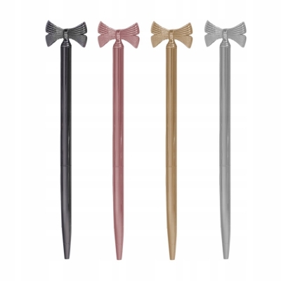 Długopis metalowy kokardkiwzór wysyłany jest losowodługopis metalowy, wysokiej jakości, bardzo dobrze wyważonygładko piszący wkład z niebieskim tuszemkolorystyka jak na zdjęciu: rose gold, srebrny, złoty, czarnydługopisy kolorowe są również metalowe ( malowanie wysokiej jakości, bez wad i odprysków)doskonały pomysł na dodatek do prezentu