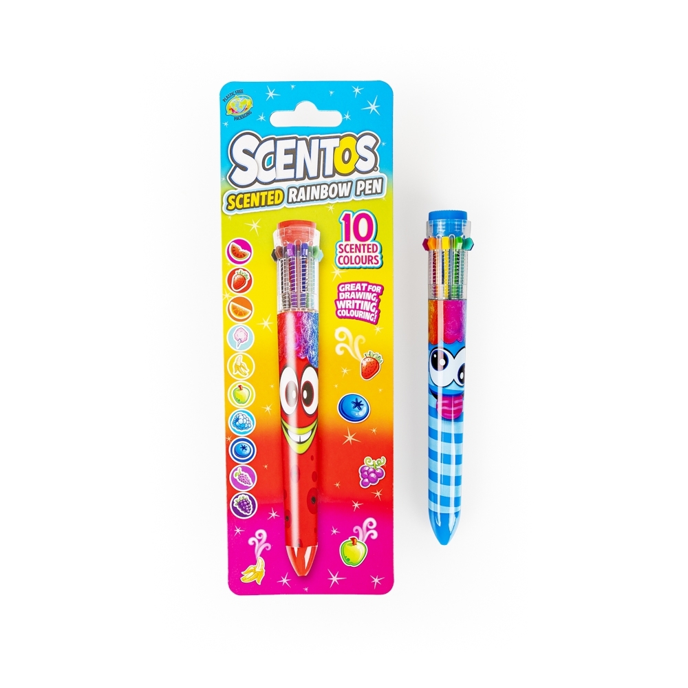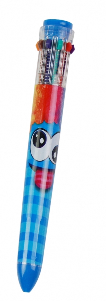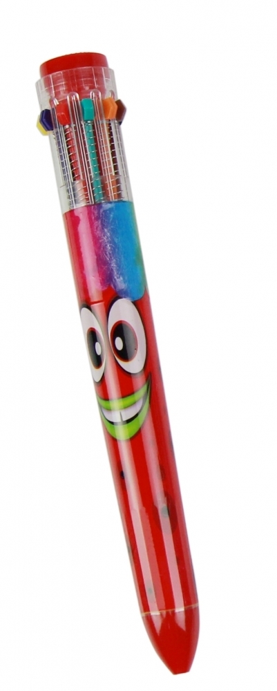 Jeden długopis, a w nim aż dziesięć różnych kolorów! To praktyczne rozwiązanie sprawdzi się z pewnością zarówno w domu i w szkole, jak i w podróży, pozwalając zaoszczędzić miejsce w bagażu. Dodatkowo, długopis ozdobiony jest wesołą buźką, co czyni go przyjaznym i atrakcyjnym dla malucha, a każdy z zawartych w nim kolorowych wkładów pachnie w inny, słodki sposób.