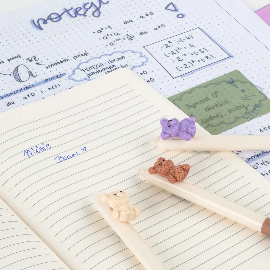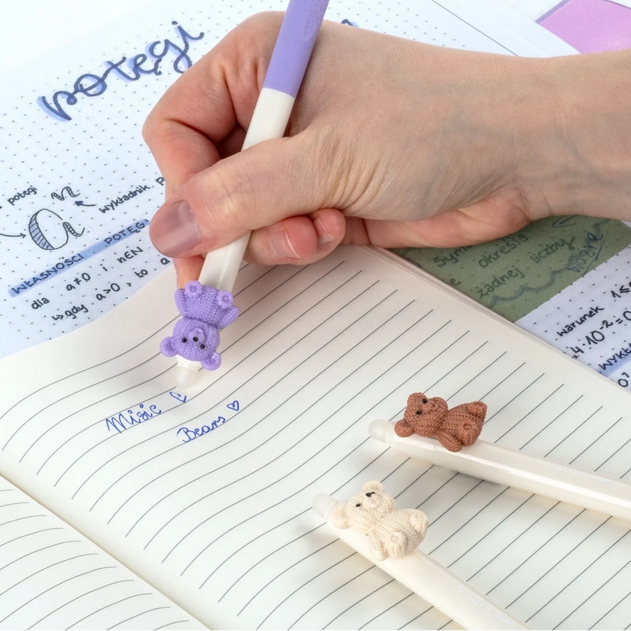 Dodaj odrobinę słodyczy do swoich notatek dzięki naszemu długopisowi automatycznemu z misiem na klipsie, idealnemu dla fanów cute stationery i stylowych akcesoriów szkolnych. Dzięki wymazywalnemu tuszowi łatwo poprawisz każdy błąd. Miś wygląda jak ręcznie robiony na drutach, co nadaje długopisowi wyjątkowego, handmade’owego charakteru.